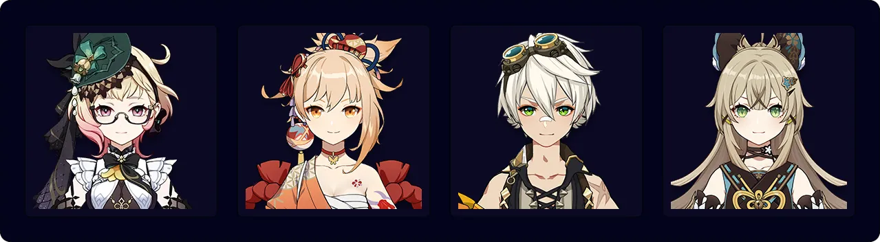 ![]() Pyro Traveler | Pyro Traveler is a Pyro Support unit who offers off-field Pyro application and the full 4pc Scroll buff. |