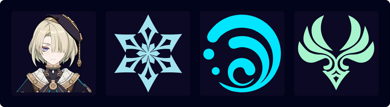 ![]() Hydro Options: Xingqiu, Yelan, Kokomi, Furina | These characters provide off-field Hydro application to Freeze enemies during Freminet’s Burst and allow him to Shatter. |