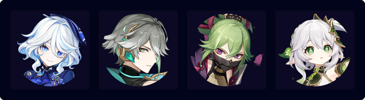 Furina ED Q > Nahida EQ > Baizhu N1 EQ > Cyno EQ N1 E 6[N4E]1