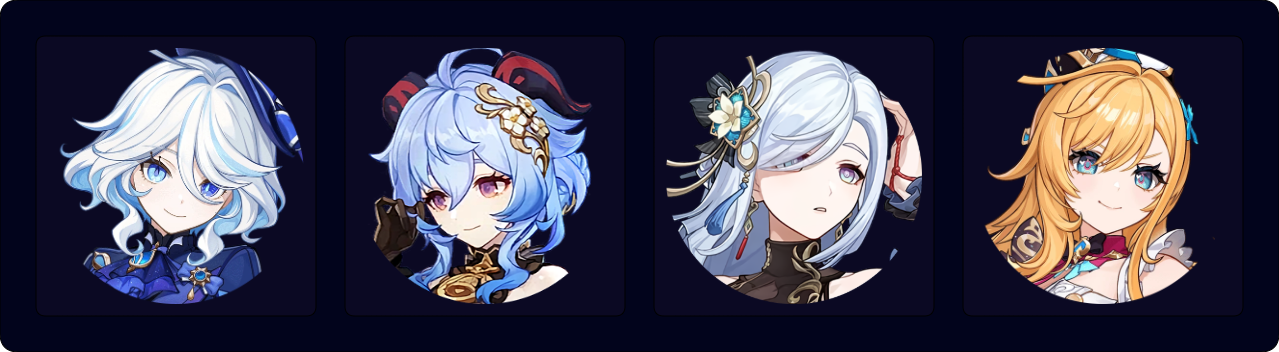 Ganyu E > Furina ED N1 Q > Escoffier EQ > Shenhe tEQ > Ganyu C EQ 2[C] > Shenhe tE N3 > Ganyu C
