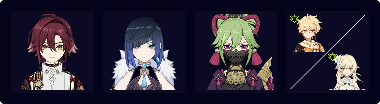Other Options:![]() ![]() Kazuha, Venti, Albedo, Zhongli | An additional Anemo unit with strong grouping and off-field damage like Kazuha and Venti are viable picks. Albedo provides consistent off-field damage, and Zhongli offers additional RES Shred and the strongest shield in the game. |