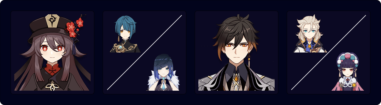 - Hu Tao’s teams revolve around her, a Hydro enabler (either Xingqiu or Yelan), and two flexible positions to include buffers, off-field DPS, or survivability options.