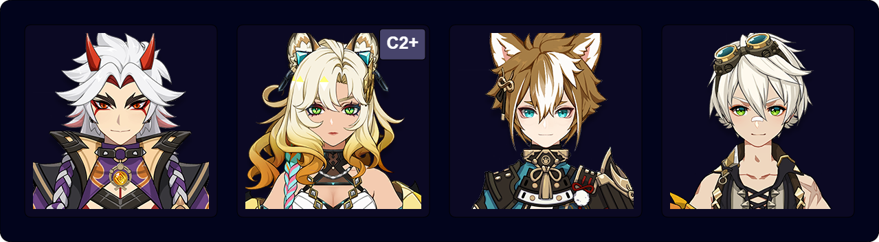 ![]() Bennett | The absence of Gorou makes Bennett’s ATK buff very valuable. His healing is also appreciated to supplement Xilonen’s healing with Furina. Bennett performs best in high-Energy scenarios; otherwise, his low Energy generation means that both Itto and himself would require additional Energy funneling, leading to damage losses. |