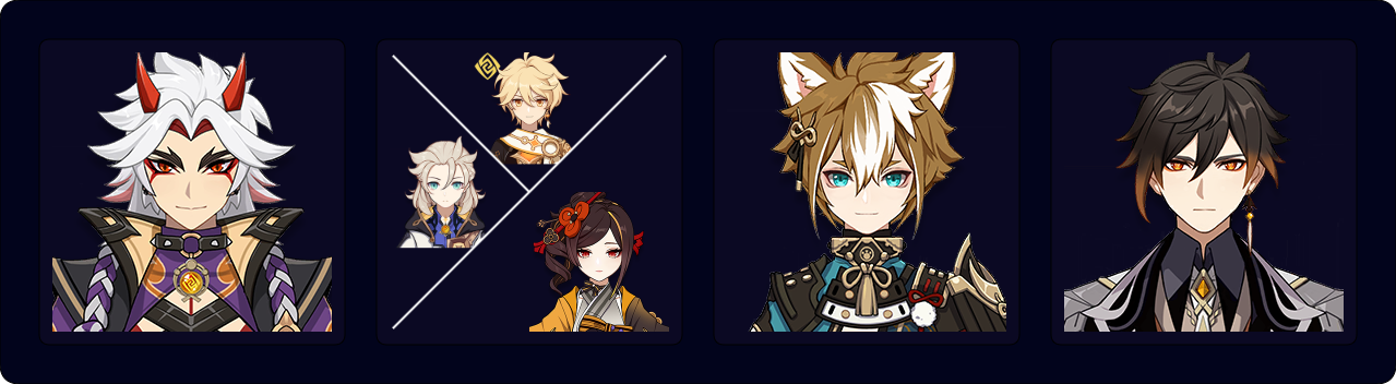 ![]() Geo Traveler | Geo Traveler is a free alternative to Chiori and Albedo. They provide a CRIT Rate buff at C1 to the on-field character within their Burst AoE and can battery Itto with their Skill. In Triple Geo, Kachina, another free alternative, performs better in the same slot. |