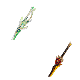 ![]() 5★ Freedom-Sworn | A weapon with passable personal damage for Keqing and a nice teamwide buff. Loses slight value if you’re only triggering the buff every other combo. |