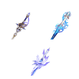 ![]() Other 5★ CRIT Stat Sticks | Absolution, Azurelight, Haran Geppaku Futsu, Uraku Misugiri, and Splendor of Tranquil Waters. 5-star stat sticks that perform solidly in Lunar-Charged, although they are never competitive with Mistsplitter. Weapons that offer CRIT DMG will be easier to use with 4pc MH and 4pc NotSU than weapons that offer CRIT Rate. Splendor is the worst of the bunch and should likely stay on Furina, if you’re using her. |