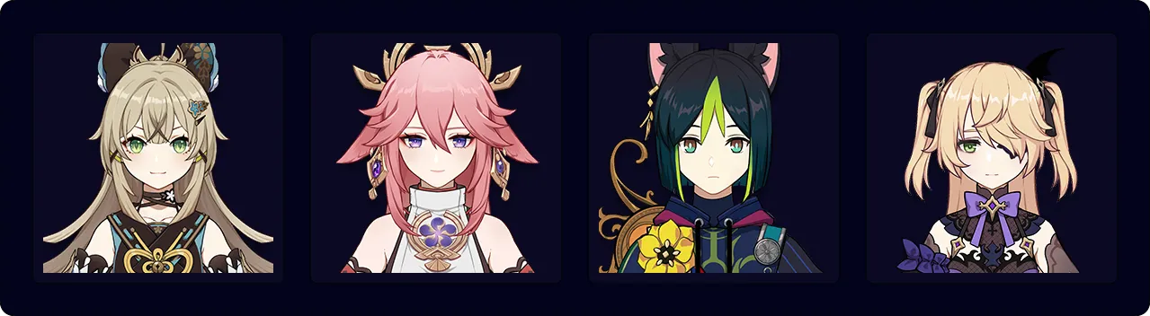 ![]() ![]() Kokomi, Barbara | Hydro healer options for Bloom teams. Kokomi is one of the few viable options for off-field Hydro application in on-field Kirara teams. Barbara’s Skill follows Kirara and has particular synergy with on-field Kirara in Nilou Bloom teams. Solo off-field Barbara is not recommended due to her limited Hydro application and long cooldowns. |