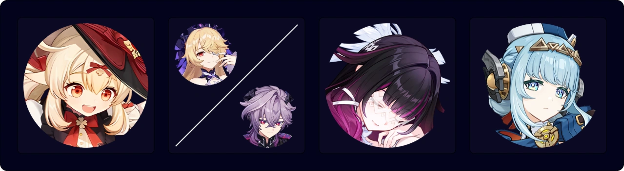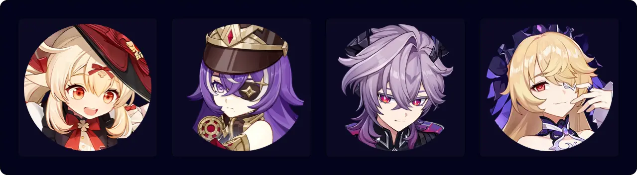 One of Klee’s best teams is Kleebineffa. Thanks to the synergy between Columbina, Ineffa, and Lunar-Charged, Klee can Vaporize a good portion of her Charged Attacks. Klee’s best artifact set in this team is still Rising Winds, but NotSU is not far behind. Yelan and Xingqiu are good substitutes for Columbina.