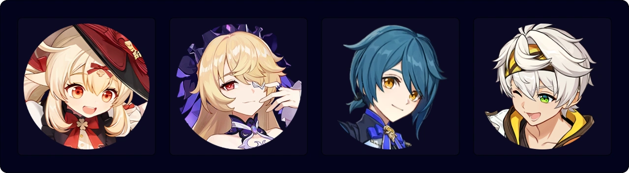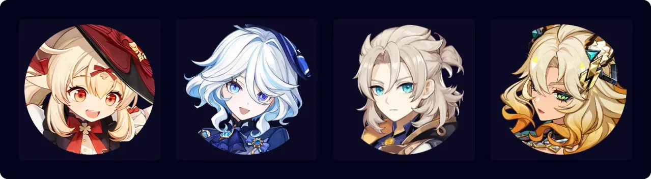 One of the best Klee teams. Xilonen enhances Albedo’s damage capabilities, and he gives DMG Bonus for the whole team. Xilonen can also wield Favonius Sword to battery Klee and Furina, allowing them to focus on offensive stats.