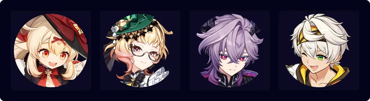 Similar to Furina teams, almost any Hexerei characters can be used here, but Durin is the best option. He provides RES Shred for both Emilie and Klee and has nice off-field damage as well. The other options follow the same order.