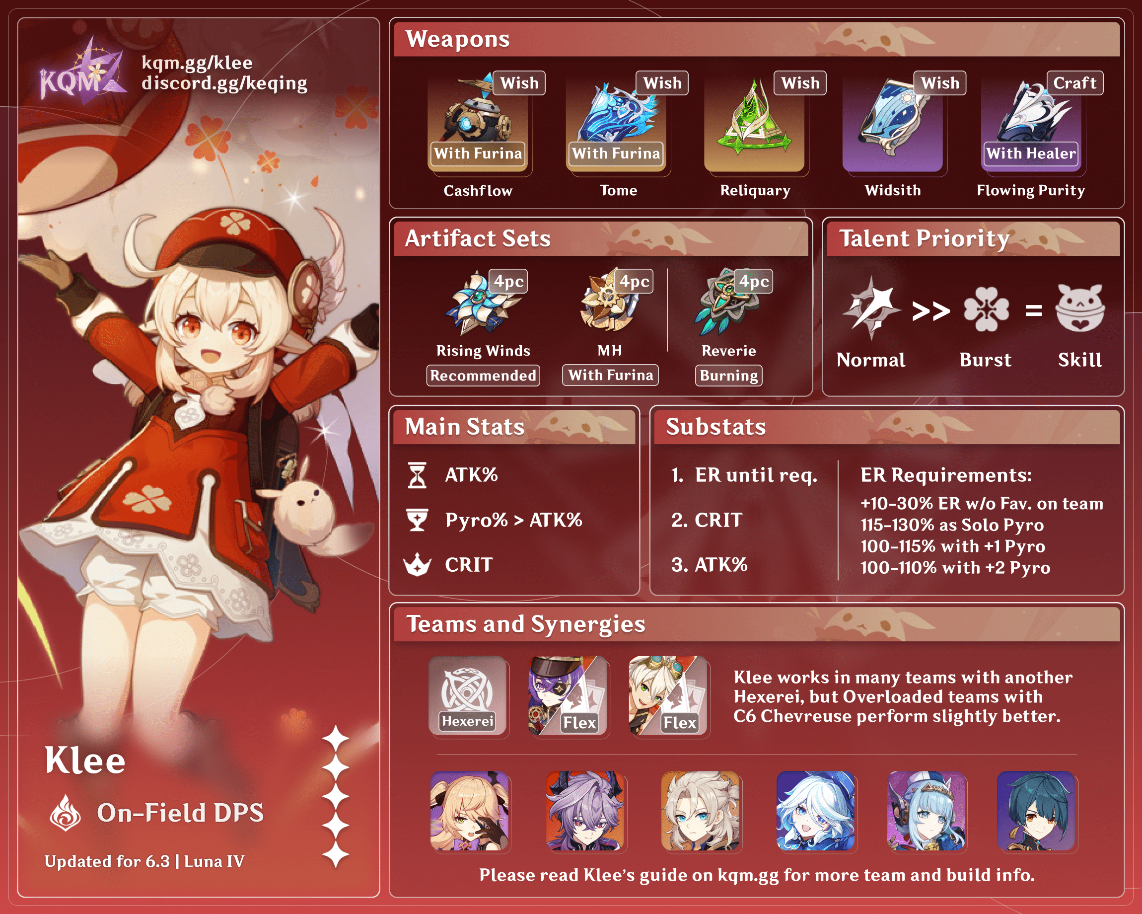 - Klee can have Energy issues in many of her teams due to her reliance on her Burst.