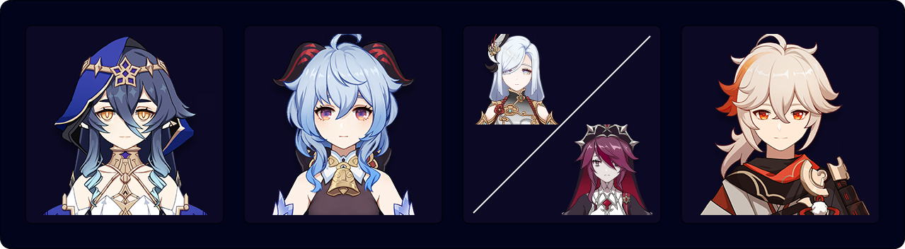 (Ganyu E)¹> Kazuha tEPQ > Layla E Q > Shenhe tEQ > Ganyu C Q E C > Kazuha tEP > Layla EQ > Shenhe tE N1 > Ganyu 2[C] E C