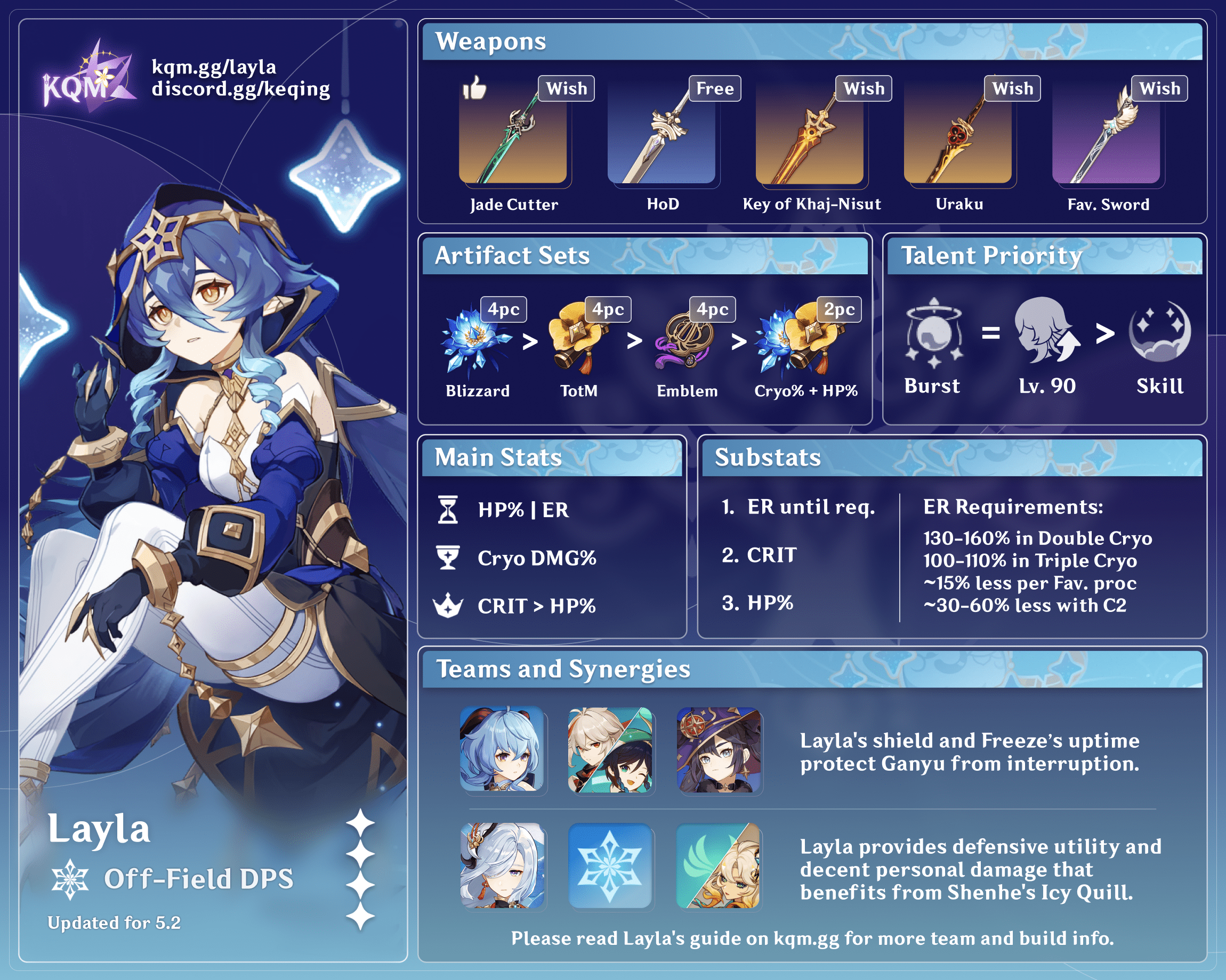 - Layla currently has the second strongest shield available after Zhongli, making her a decent replacement for him as a shield flex. She is especially useful in teams that benefit from Cryo units such as Freeze, Mono Cryo, Physical, and Melt.