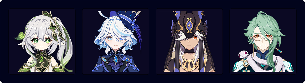 Furina ED Q > Nahida E Q > Baizhu N1 EQ > Cyno EQ N1 E 6[N4E]¹