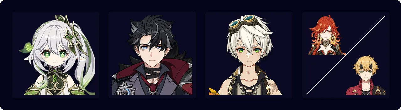 In Double Dendro compositions, a second Dendro character can trigger additional reactions to proc her Skill without the need for Nahida to use her Normal Attacks, and also grants the team EM through Dendro Resonance. Due to her Skill’s improved consistency, teams can afford to use Hydro characters with longer on-field presence.