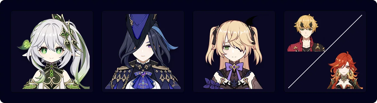 Nahida E (Q) > Mavuika tE (Q) > Fischl E/Q > Clorinde E combo Q