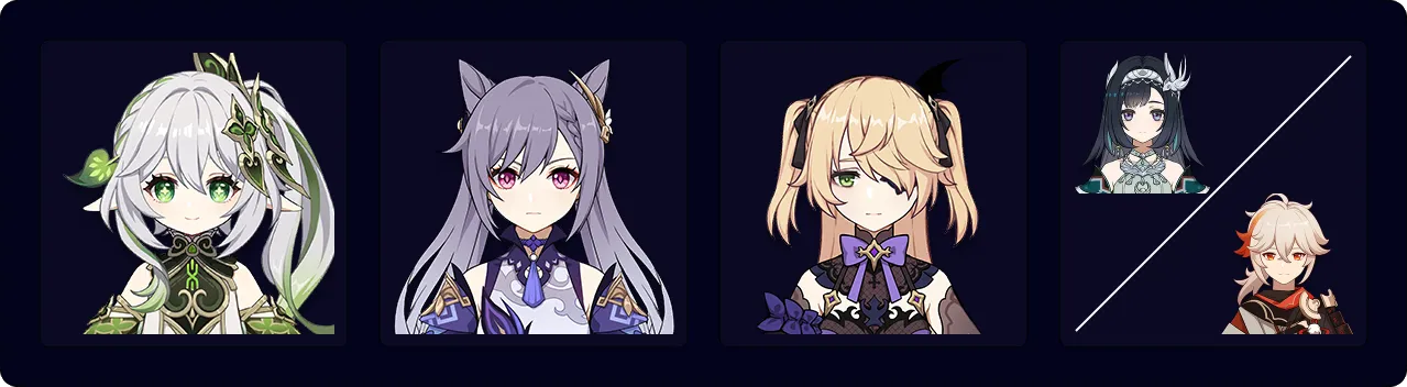 Nahida E Q > Xingqiu EDQ N1 > Kirara (Q) shE¹ > Klee combo²