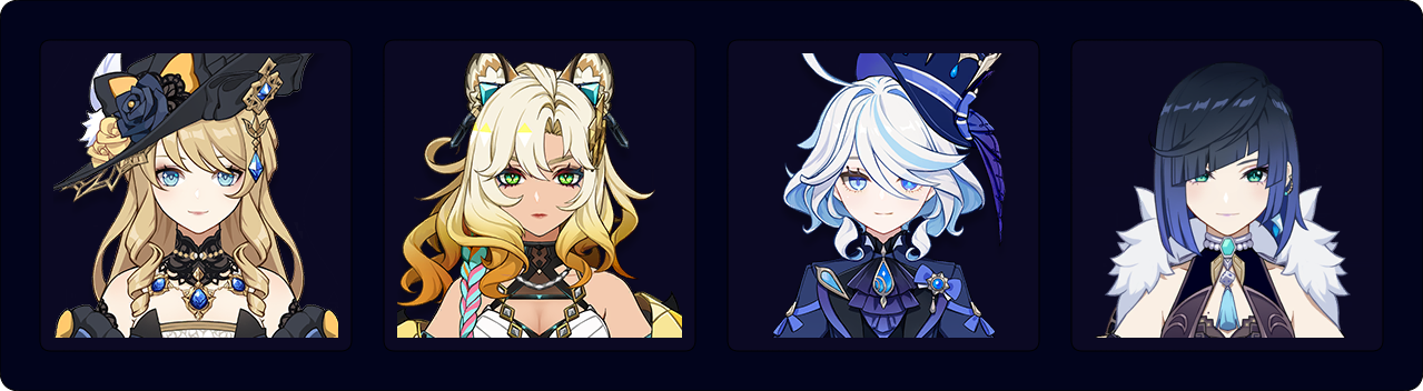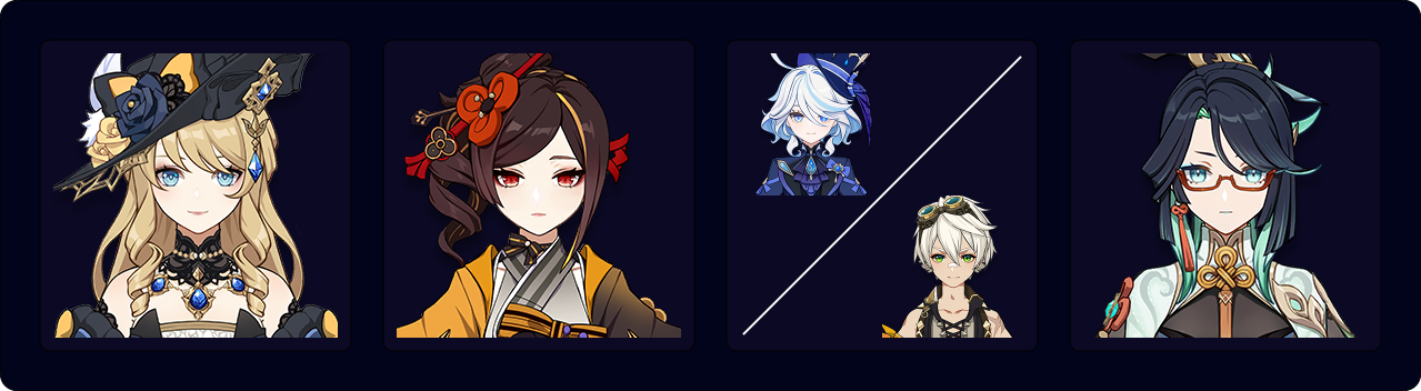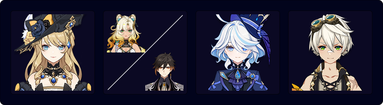 ![]() Furina | Due to Furina’s HP mechanics, a strong healer is necessary to take full advantage of Furina’s buffs (see Notable Teammates in Furina’s Quick Guide). Furina’s Skill also has an awkward 20s cooldown and 30s duration, forcing you to either extend the rotation to 20s or cast Furina’s Skill every other rotation (with some downtime). Nevertheless, if you can work around these caveats, Furina provides a very useful DMG% buff as well as some off-field Hydro application and damage. |