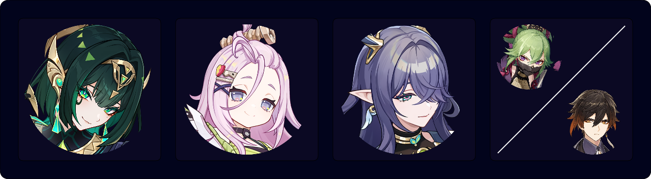 This team has a high damage ceiling but is fragile due to the lack of sustain. Lauma’s C1 alleviates this issue and makes this a more recommended team. When employing dash cancels in Nefer’s combo, this team becomes much less vulnerable since Nefer spends most of her time in i-frames.