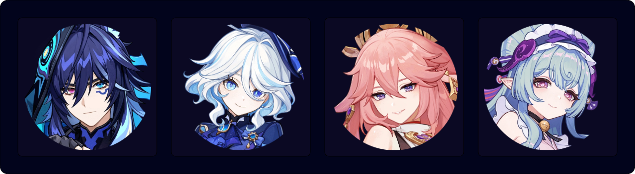 Mizuki is an on-field character who floats around and deals damage through Swirl reactions. Her unique playstyle requires teammates who have off-field damage and Elemental application to enable Swirl for her. Since Mizuki cannot drive some coordinated attacks such as Xingqiu’s or Beidou’s Bursts, units like Furina or Yae are valuable teammates for her. Ororon completes the team with his 4pc Scroll buff and respectable personal damage in multi-target scenarios.