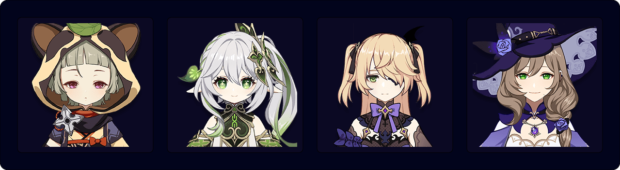 Nahida | Compared to Collei and Dendro Traveler, Nahida’s Dendro application allows for more mobility, which complements on-field Sayu’s highly mobile playstyle. |