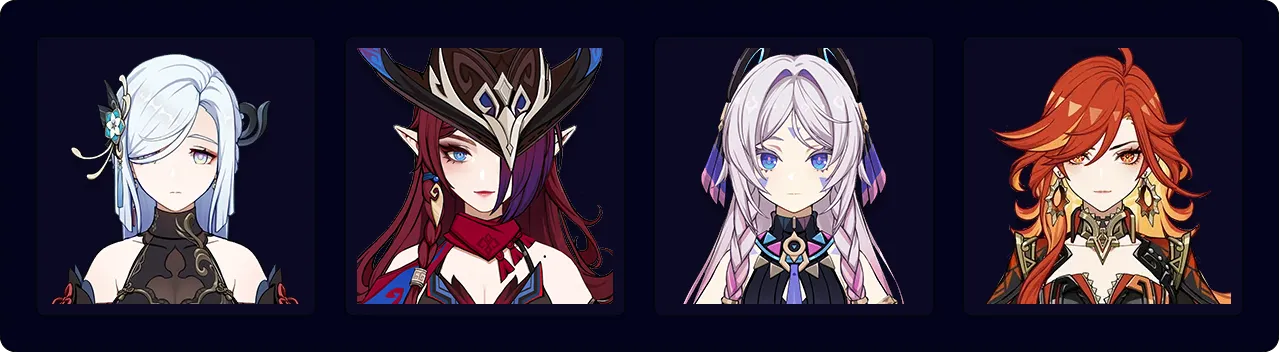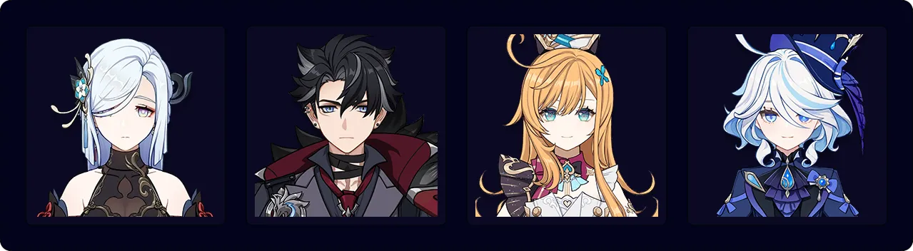 ![]() Furina | Furina is a mighty teamwide buffer and off-field Hydro damage dealer. |