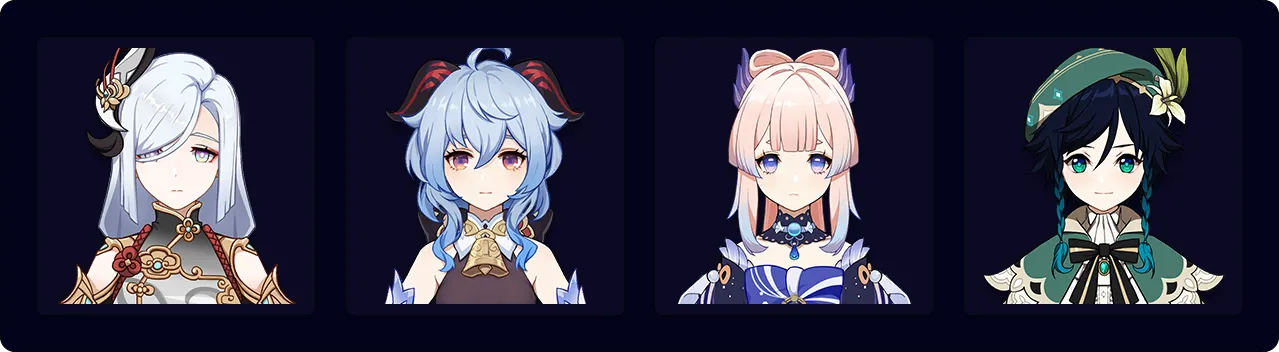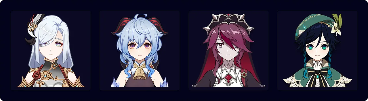 Shenhe tEQ > Kokomi E > Ganyu EQ C > Venti EQ > Shenhe tE > Ganyu C E C > Venti E > Ganyu C > Shenhe N1
