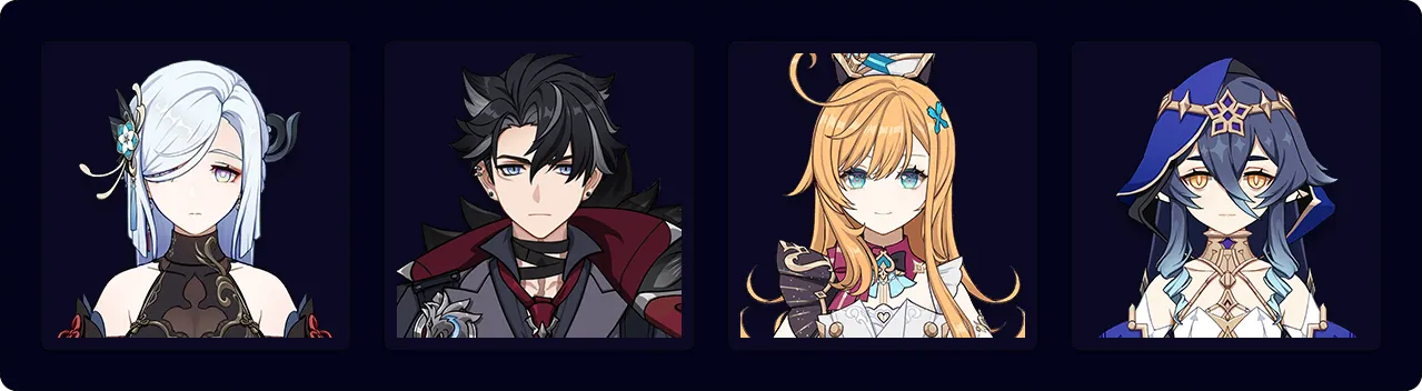 ![]() Wriothesley | Shenhe’s potential with Wriothesley is limited by her long Elemental Burst animation, which often means her buffing uptime from her Elemental Burst is limited, or she eats into Bennett’s buffing uptime. Wriothesley’s long uninterrupted field time also means Shenhe uses her Hold Skill once per rotation. Wriothesley has multiple supports that can be better suited to maximize his team’s damage instead of Shenhe. |
