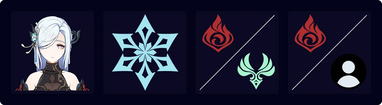 Mavuika | Mavuika can provide off-field Pyro application, but it is insufficient to enable Wriothesley or Ganyu to Melt their attacks alongside Shenhe. Mavuika provides her high personal damage, and her DMG% buff can be used when accompanied with a second source of Pyro application. |