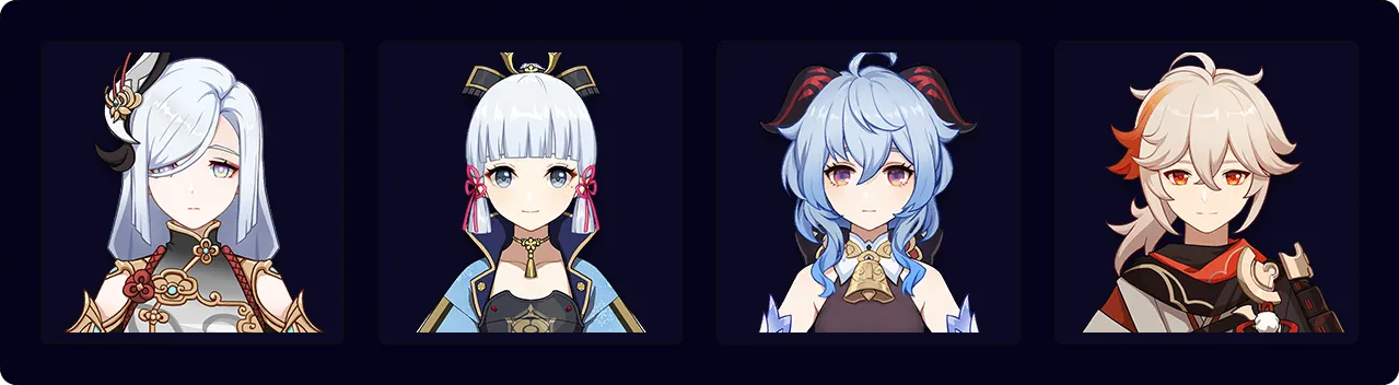 Ayaka D N1 E > Kazuha tEPQ > Shenhe Q tE > Ganyu Q E > Ayaka D N1 E Q N1C > Kazuha tEP > Shenhe tE > Ganyu C E