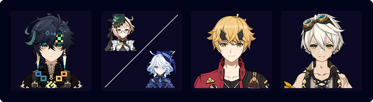 ![]() Albedo / Chiori | Steady off-field damage dealers. Although Albedo’s Burst buffs the team’s EM, it is often inconsequential. |