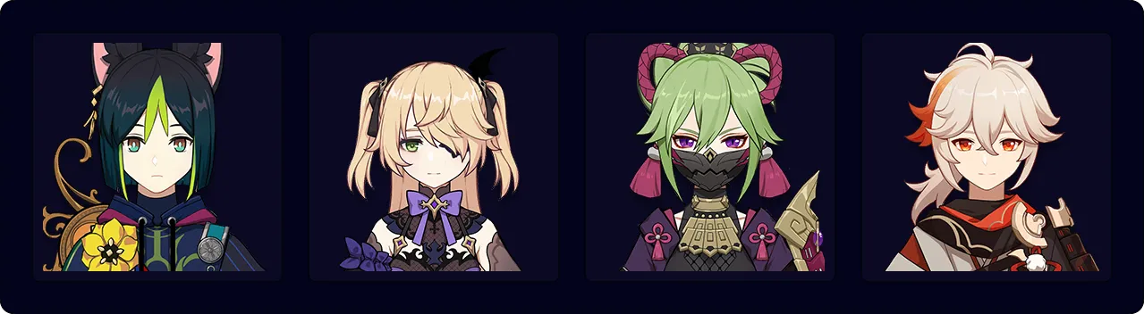 Tighnari — Fischl — Kuki Shinobu — Kazuha
