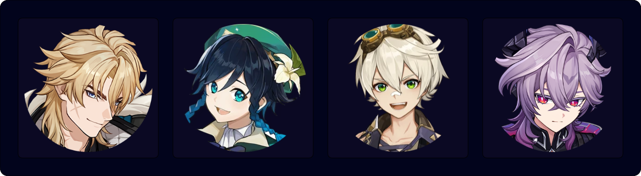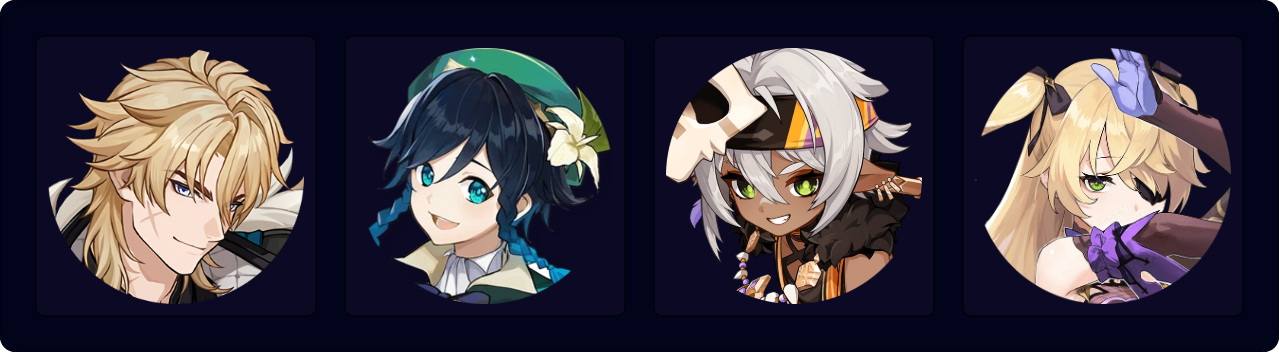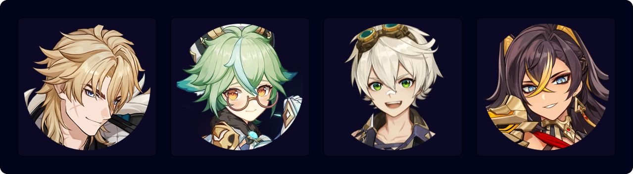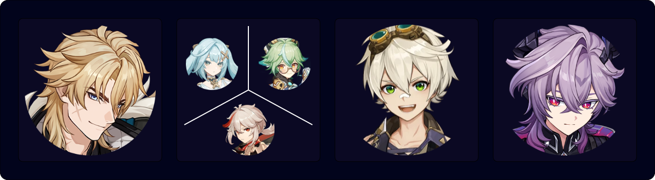 Mavuika | Mavuika is a decent choice for her respectable personal damage, even without a second Nightsoul character. She also slightly buffs Varka with her A4 Passive’s Common DMG Bonus. |
