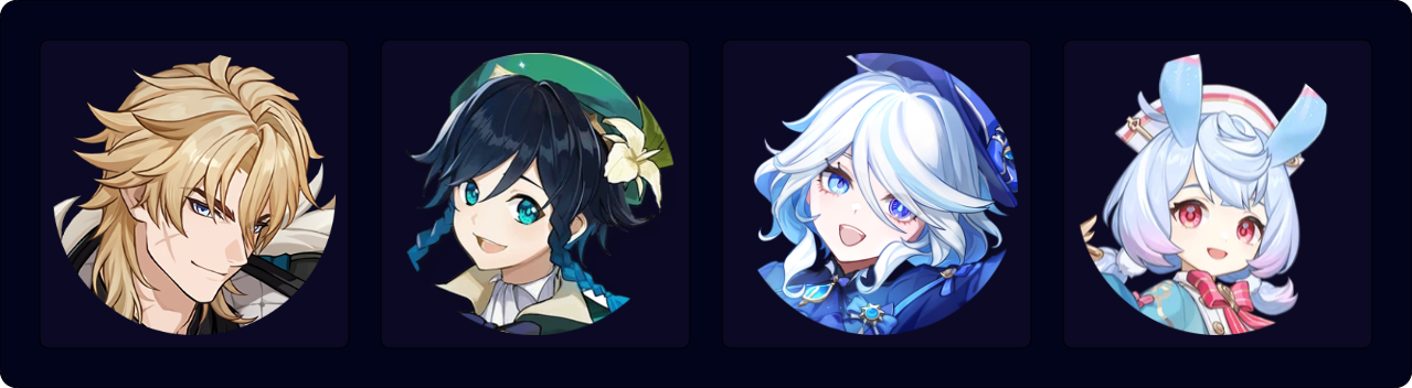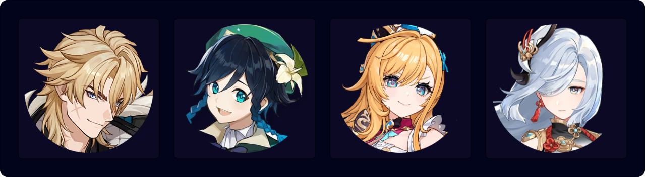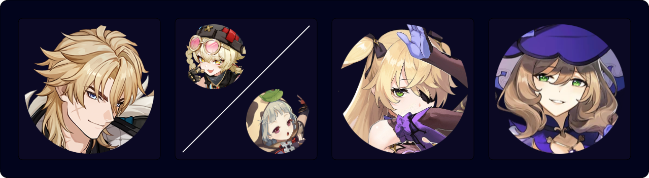 ![]() Charlotte, Layla, Mika, Diona | Sustain options with various additional benefits. Charlotte can hold TTDS, while Mika provides an Attack SPD buff. Layla’s personal damage is decent when she is built, especially with Shenhe in the team. Diona can hold Elegy for the End for more team buffs. |
