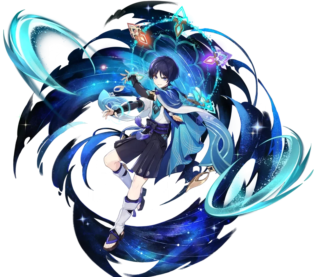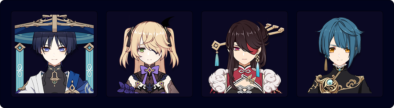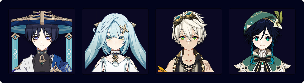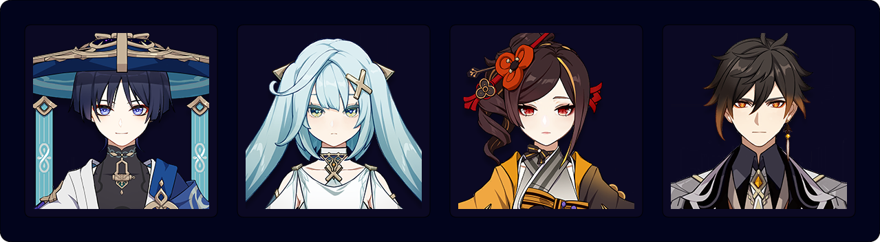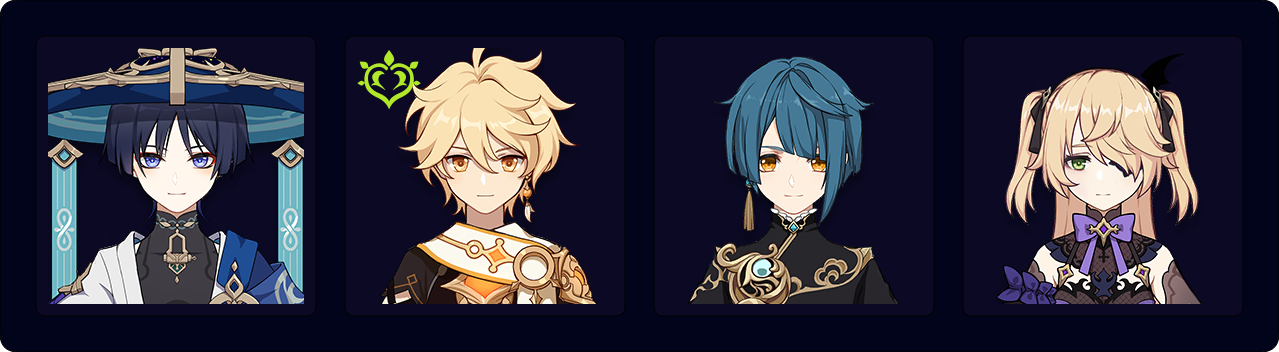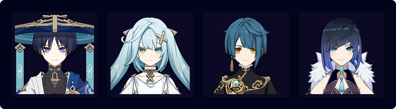A single-target team of four people who go to the same hairdresser. Xingqiu and Yelan decrease each others’ Energy Recharge requirements while providing large amounts of off-field damage. Together with nearly any Anemo character holding 4pc Viridescent Venerer, they can take down much of the Abyss with nearly any character added to the fourth slot. Wanderer teams are no exception.