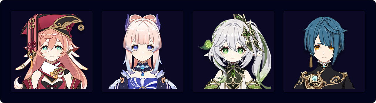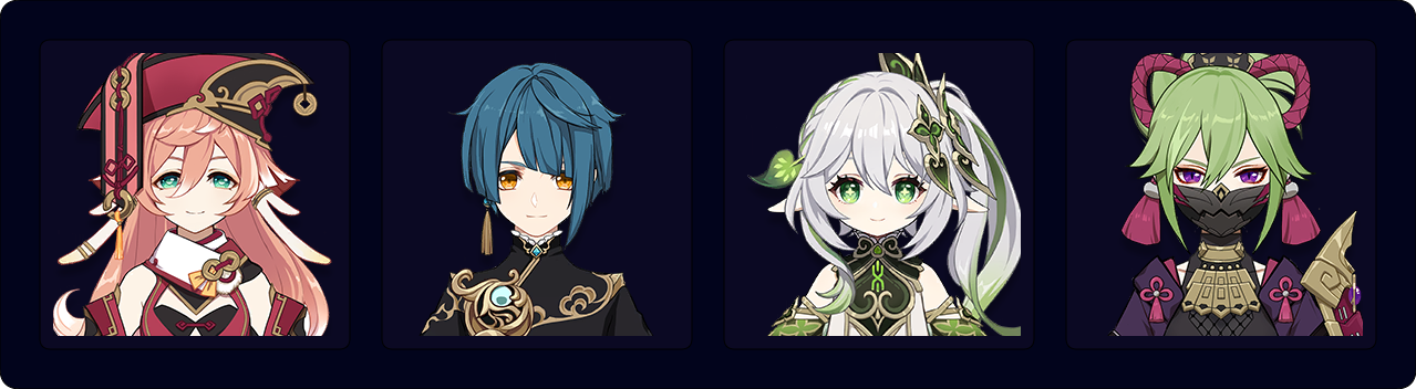 ![]() Nahida | Nahida is the best Dendro applier due to her peerlessly consistent AoE application. She can freely swap in to mark enemies with her Skill as needed, and her EM buff boosts Yanfei’s reaction damage. |