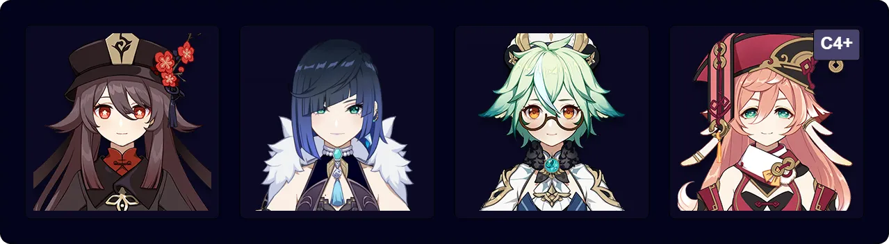Yelan EQ N1 > Yanfei N1 Q E > Sucrose N2 E > Hu Tao combo