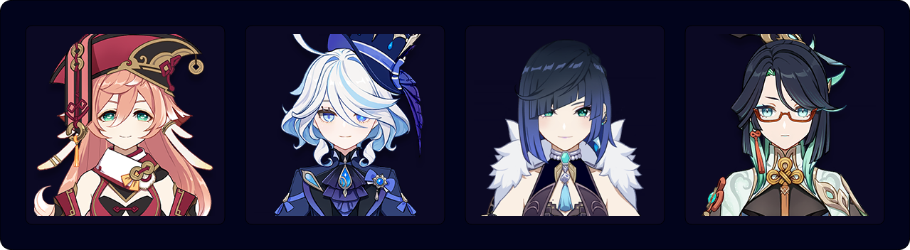 ![]() Furina | Furina brings long-lasting off-field Hydro application and damage, along with a powerful teamwide buff, but she requires a healer to bring out her potential. Her teamwide HP drain allows Yanfei to effectively use the 4pc Marechaussee Hunter set. |