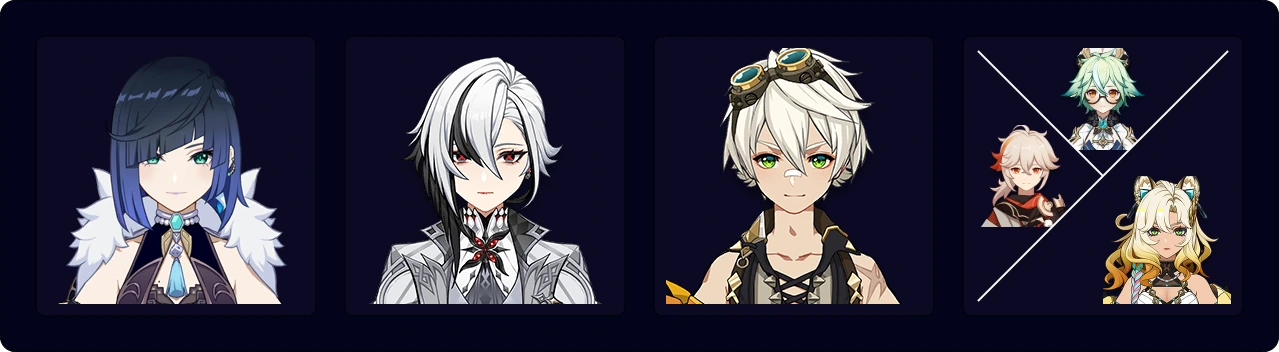 Yelan EQ N1 > Arlecchino (EQ)1 E > Bennett EQ > Sucrose N3 ED > Arlecchino N3C 6[N3D]