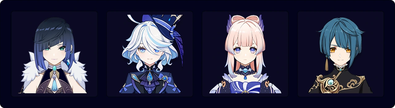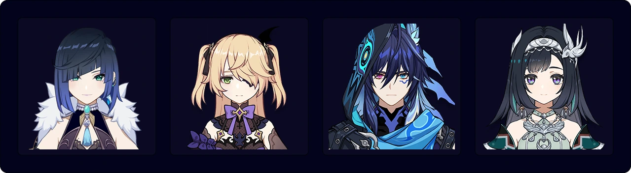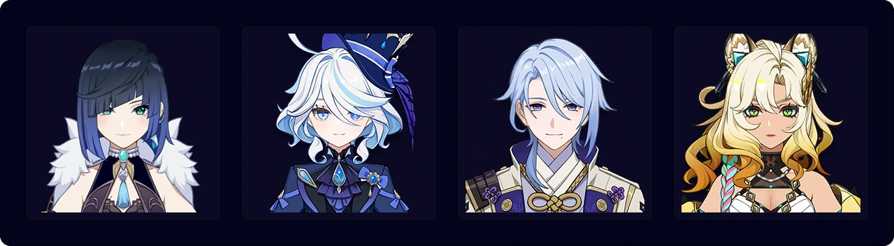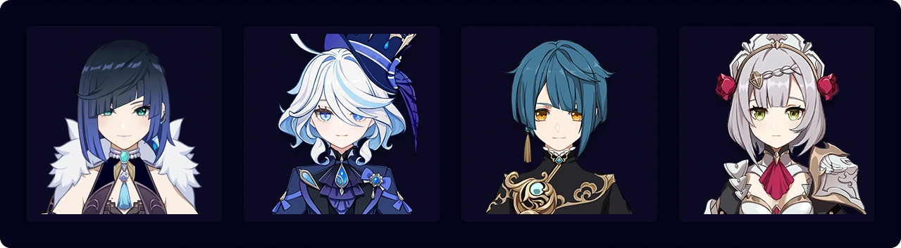 A strong yet straightforward team consisting of four Hydro units. Their shared Hydro Particle generation allows all of them to use a relatively low-ER build, resulting in more offensive stats for larger damage output. Even though this team is single-target focused, its single-target performance is so high that it can deal with most low-AoE fights with ease.