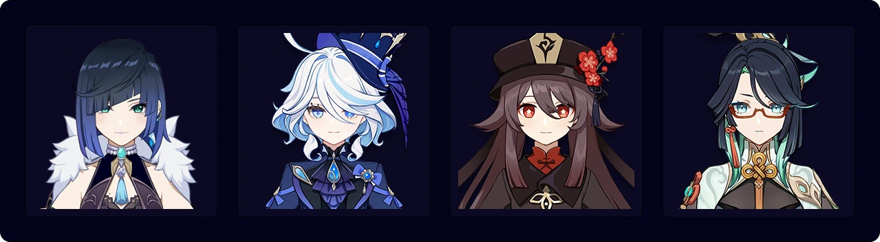 Furina ED Q > Xianyun EPQ > Yelan Q N1 E N3-41 > Hu Tao E 5[N2CJP]