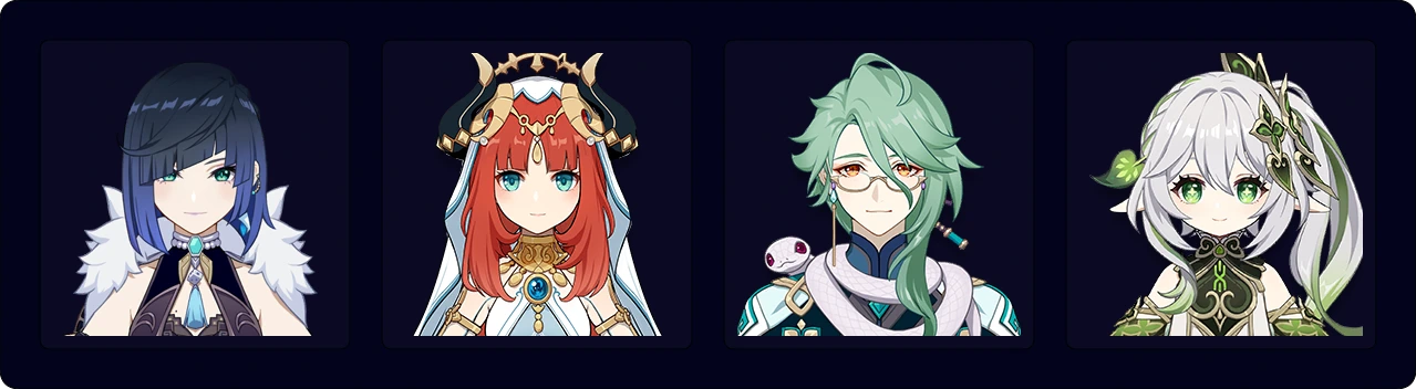 Nilou E N2 E > Nahida E Q > Baizhu EQ > Yelan Q N1 E 2[N4D] N4 > Baizhu N1 E N2 > Yelan N4D E N4