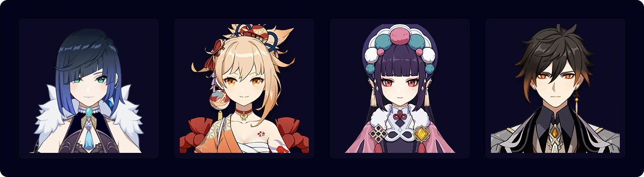 ![]() Other Hydro Units | Other Hydro teammates have little to no synergy with Yelan. They can still be played alongside Yelan for Hydro Resonance, better Energy economy, or added damage and Elemental application. |