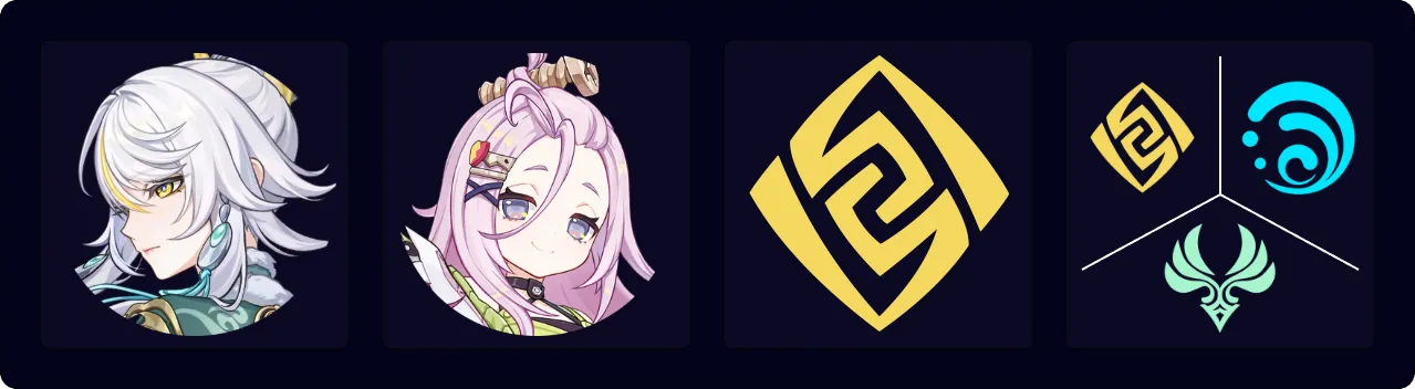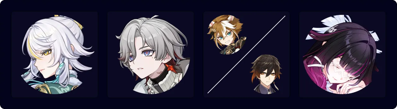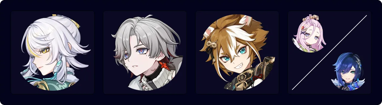 These teams focus on enhancing the damage output of Zibai and Columbina. Gorou serves as a more offensive option, especially if he is C6 and Zibai has Constellations or is wielding Lightbearing Moonshard or Uraku Misugiri. He prefers to Burst every other rotation due to its 20s CD, but it can be useful at times to Burst every rotation to avoid “circle impact.” Zhongli, on the other hand, provides a sturdy shield to enable Zibai to wield Harbinger of Dawn without worrying about losing its passive or having her Normal Attack sequence disrupted.