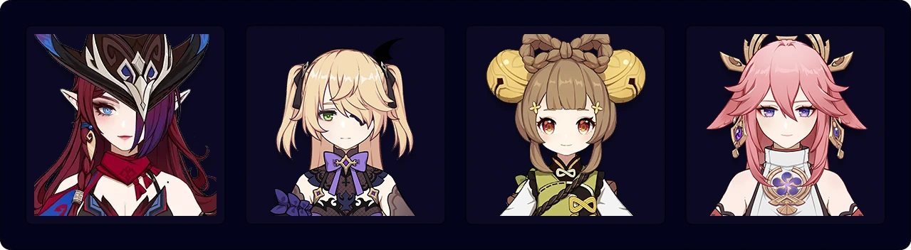 Яэ Мико [E] > Яо Яо E > Фишль E/Q > Часка E 4[C] (Q)1