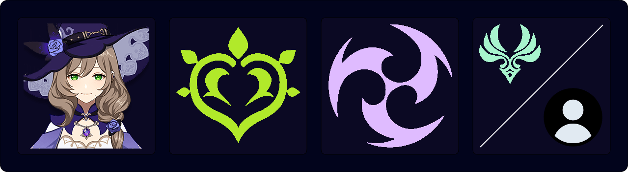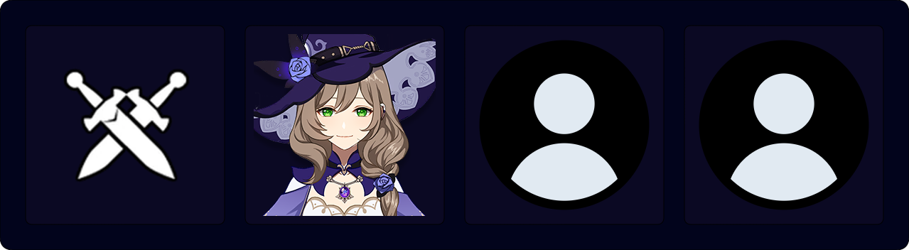 ![]() Персонаж на выбор (включая, но не ограничиваясь): Кадзуха, Шилонен, Чжун Ли, Фишль, Качина, Дэхья, Лайла, Диона, Бай Чжу, Кирара, Яэ Мико, Бэй Доу и Сян Лин | Последнее место в отряде доступно совершенно разным персонажам. Кроме уже упомянутых ролей, сюда могут встать ДД вне поля. |