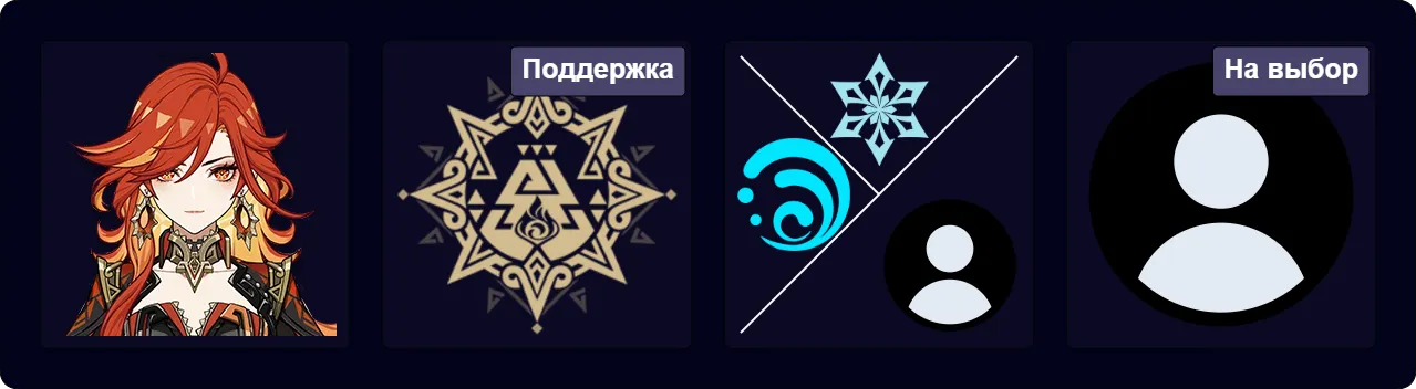 Анемо персонаж с набором Тени может усиливать ДД отряда и, если возможно, также Мавуику. Рекомендуются персонажи, которые предоставляют дополнительные баффы или поддержку. Еще Мавуика может вписаться в отряды с Чаской, обеспечивая урон вне поля, баффы и конвертацию пуль в Пиро.