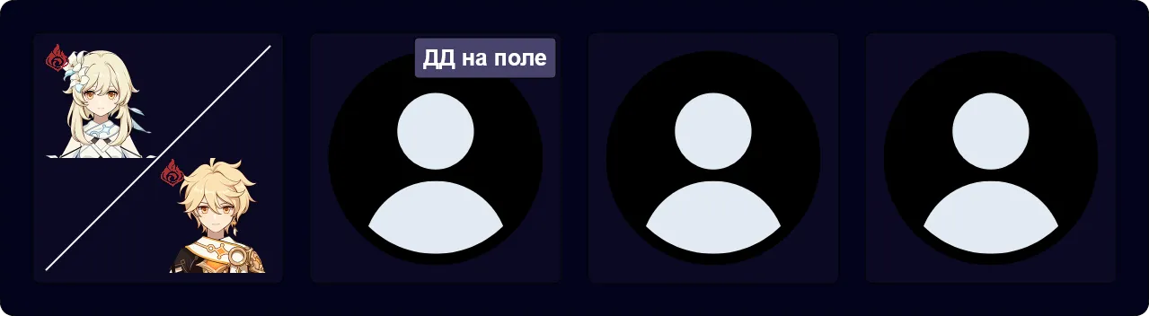 Ситлали | Ситлали накладывает Крио вне поля, позволяя активировать Таяние, а также дает очень хорошие баффы своим талантом В1, Свитком и оружием поддержки наподобие Эпоса и Бдения взывающего к звездам. Будучи персонажем из Натлана, она также способна активировать Вспышку Ночного духа, что позволяет Пиро ГГ активировать талант В4 и получать больше энергии. |