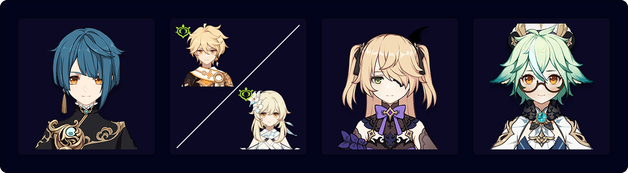 ![]() Яо Яо, Бай Чжу, Кирара | Дендро персонажи защиты. Хотя у них нет прямой синергии с Син Цю, они часто используются вместе с ним в командах, основанных на Бутонизации. Снижение входящего урона Син Цю также усиливает щиты. |
