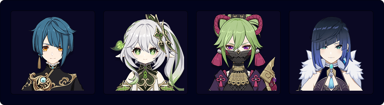 Требует Гидро и Дендро персонажей для ядер и тщательно контролируемого Пиро персонажа для активации Цветения на Дендро ядрах. Чтобы вызывать Цветение вместо Горения, требуется частое наложение Гидро — и Син Цю прекрасно выполняет эту функцию.